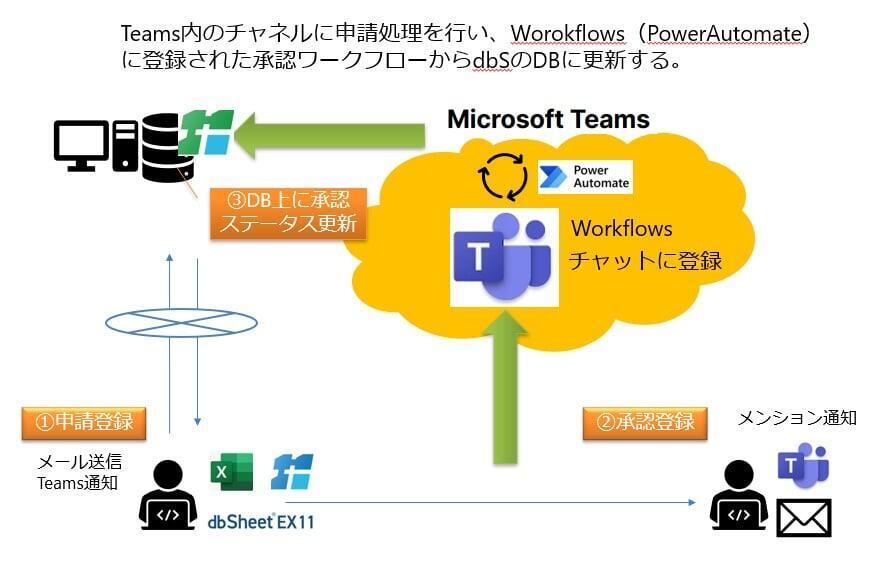 Excel業務の中で申請するようなケースがあれば、dbSheetとTeamsを連携することで、申請したことをTeamsへチャット連携することが可能になります。