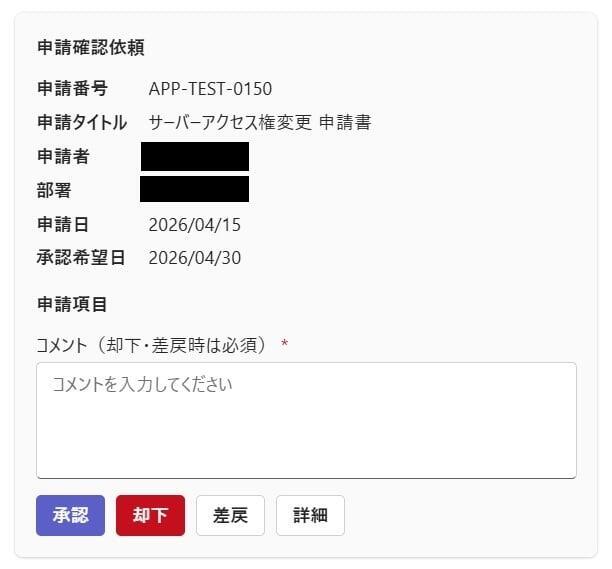 取得したデータを基にTeamsへアダプティブカードを投稿し、ユーザーの確認や承認操作を促します。