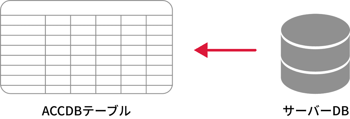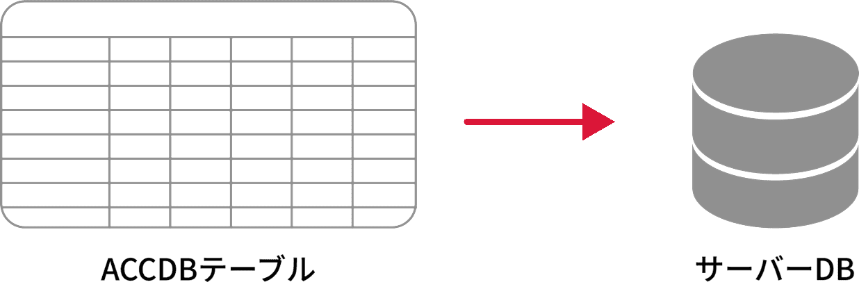 ①Accessファイルのデータ部の部分をサーバーのDBへ移行します。(移行後は、Accessファイルのテーブルは一時テーブル(ワーク)として利用します。
