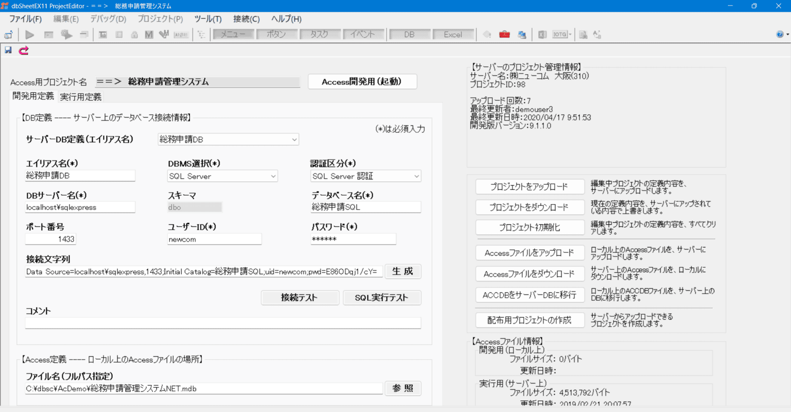 この時に、開発版の機能を利用します。(機能ボタン:AccessをサーバーDBに移行)