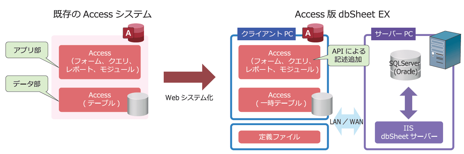 dbSheetのAccess対応版では、既存のAccessアプリ部、およびテーブル定義を最大限有効利用します。