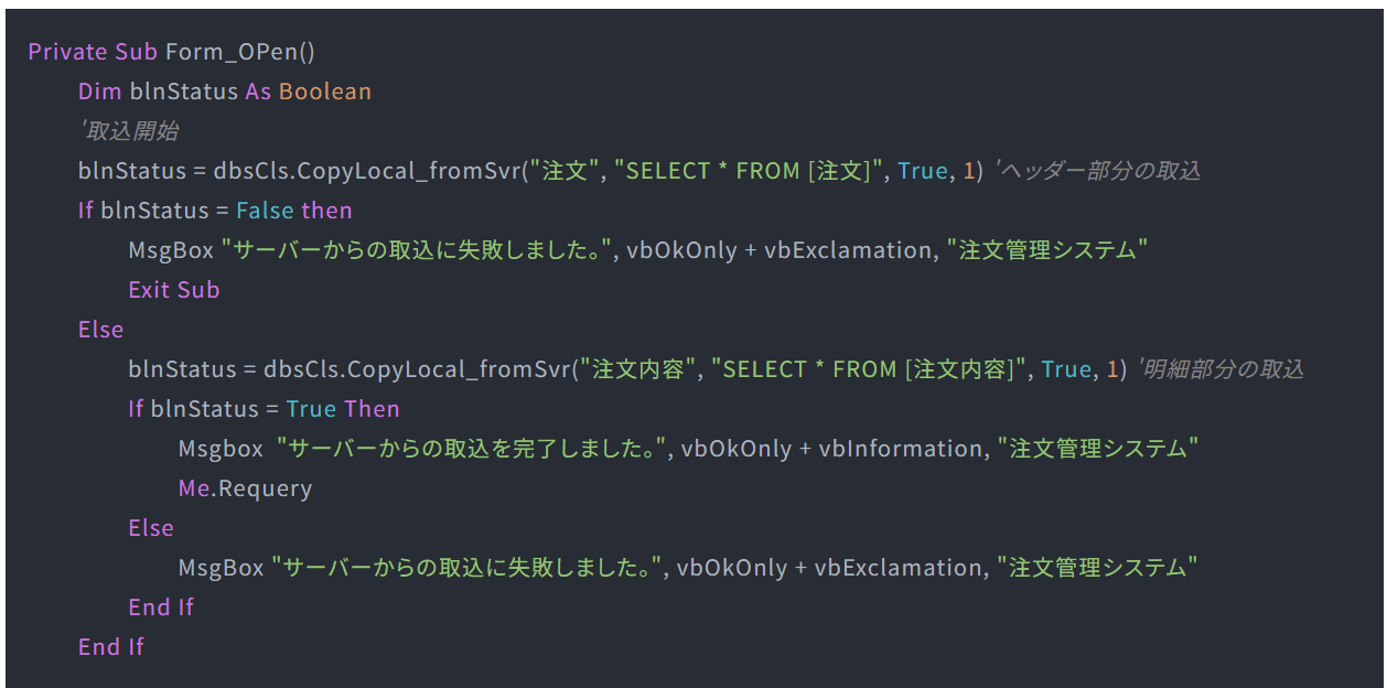 サーバーDBにある必要なデータをクライアントPCに取り込むときのサンプルです。