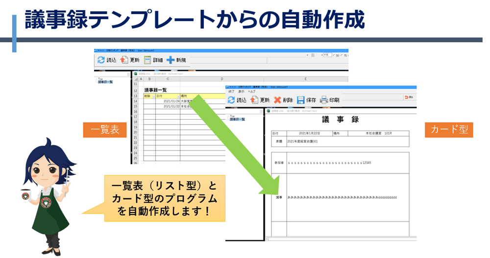 リスト型・カード型のExcelシートを対象にプログラムを自動作成出来ます。